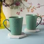 KHURJA POTTERY Handcrafted Ceramic Studio Pottery Tea/Coffee Mug Set of 2 300 ML (Green)