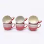 KHURJA POTTERY Studio Pottery Ceramic Coffee Mugs Cups Set of 6 (Pink - White 150 ml Each Microwave & Dishwasher Safe) | Tea | Hand Glazed & Handmade | Special Rare Edition