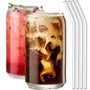 HomeKitchenServeware setsMugOM RADHEY Ice Juice Drinks Glass Can Mug with Straw for Milk/Coffee/Green Tea Cup Set of 1-510ml Transparent Can Shape Cup (Abonex 1)