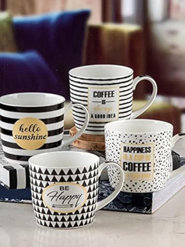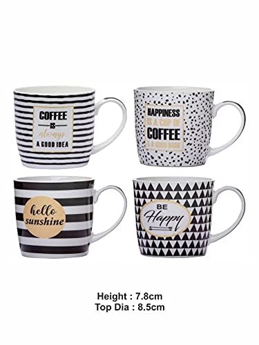 ROXX Bone China Tea Cups Coffee Mug with Printed Set of 4 Pieces 300ml RX-7146-4