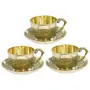 SHIV SHAKTI ARTS Handmade Set of 3 Brass Tea Cup and Saucer Sets Capacity=150 ml Each