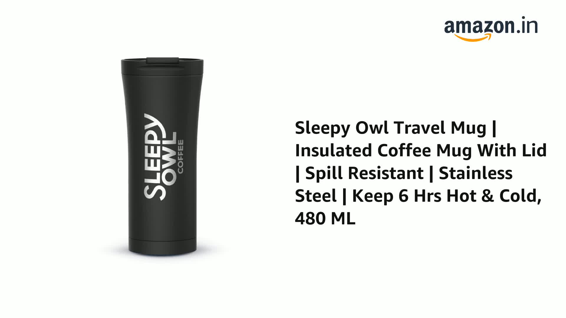 Sleepy Owl Travel Mug | Insulated Coffee Mug with Lid | Spill & Leak Proof | Stainless Steel Tumbler| 6 Hrs Hot & Cold Tea Coffee | 480 ML Sipper Bottle | Suitable for Office and Travelling