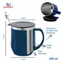 Tea Coffee Time Unbreakable Hot Insulated Double Wall Stainless Steel Travel Mug With Lid (Blue 1Pcs), 400 milliliter