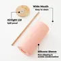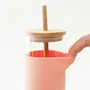 The Better Home Borosilicate Glass Tumbler with Lid and Straw 450ml | Water & Coffee Tumbler with Bamboo Straw & Lid | Leak & Sweat Proof | Durable Travel Coffee Mug with Lid (Peach)