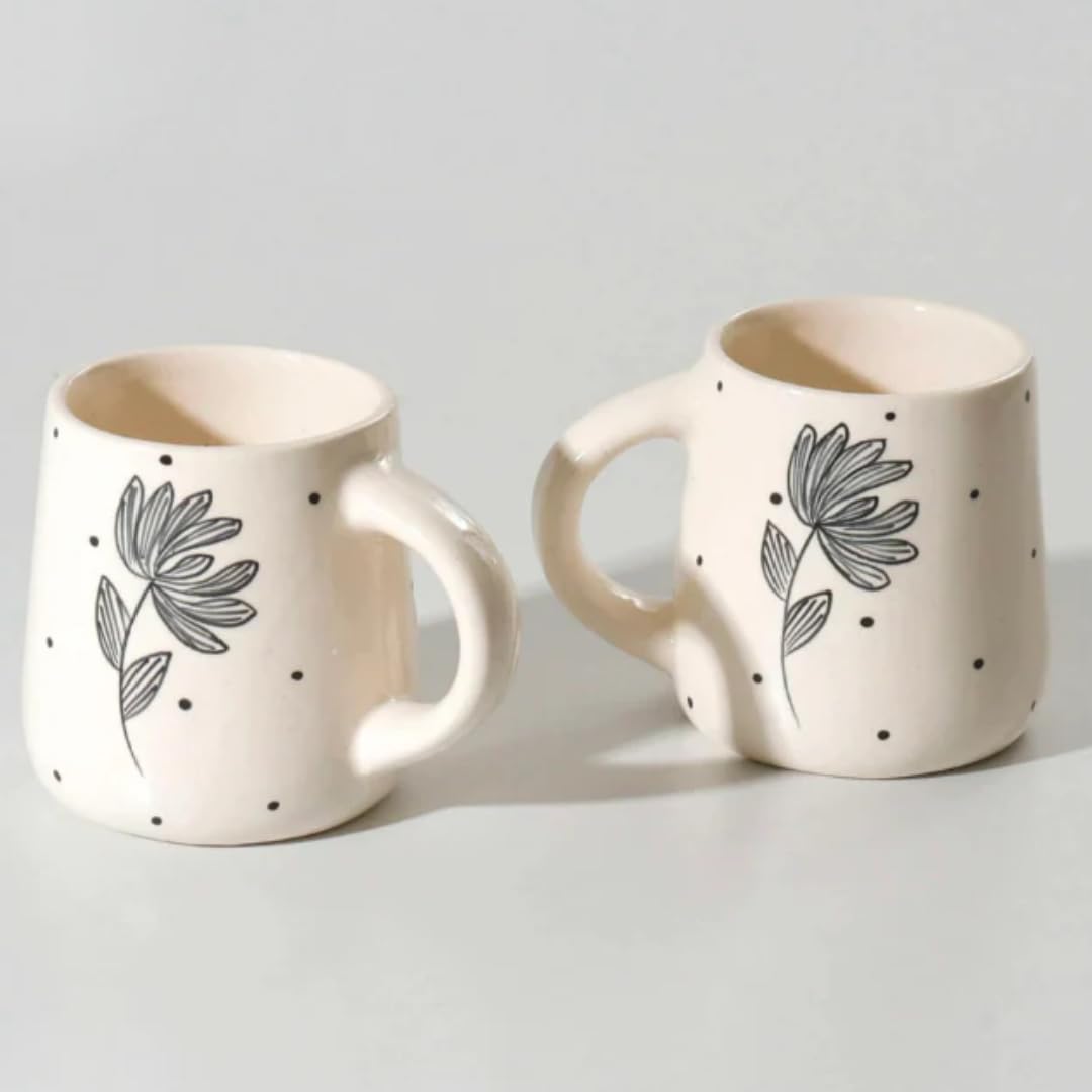 Transform your coffee moments with the Handcrafted Art Cup a perfect harmony of timeless elegance and vibrant artistry. This stunning set showcasing a pristine off white base accented with Black Lotus and leaves is designed for those who cherish the fusion of classic tradition and modern aesthetics. Handcrafted by seasoned artisans in a quaint village of Uttar Pradesh this product is the result of weeks of dedication of artisans where passion love respect and hard work come together in perfect harmony.