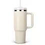 WEZOSHINET Tumbler with Handle and Straw Lid Insulated Reusable Stainless Steel Water Bottle Travel Mug Iced Coffee Cup Travel Mug for Hot and Cold Beverages 40 oz Tumbler (40 Oz - Cream)