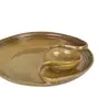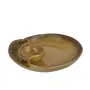 PRODUCT DESCRIPTION:Have fun 'swirling' & dipping your most favourite eatables in this serving platter that is handcrafted in a round shape with shades of caramel in the middle and deep brown on the borders with a uniquely shaped dip space that mimics a bowl. Created to serve different types of appetizers chips snacks loaves of bread with a provision in between for putting sauces & chutneys. This chip-n-dip platter makes up for attractive & exclusive tableware to have or to gift others.FEATURES:This chip-n-dip platter handcrafted in Ceramic is well-designed by the artisans by blending the colorful round plate with a bowl at the top to be used as a sauce and chutney dip area so that it gives a 'swirling' effect.It represents various shades of brown in an ombre effect.It is not only used for serving snacks and starters but will also enhance the beauty of your dining table and make your loved ones and guests happy.You can use this designer platter not only in your home kitchen but also in office canteens cafes or restaurants to serve tasty appetizers to your visitors.NOTE:Please refer to the dimensions in the image.The platter is Microwave Oven Freezer & Dishwasher safe.There may be a slight variation in the glazing color or finish of the platter as the glazing is done inside the furnace at a very high temperature to make the product strong and sturdy.As the product is completely handcrafted & hand-painted there might be a slight difference in the shape & design.This product is not made of Bone China.CARE INSTRUCTIONS:Handle with care.Wash gently with a mild detergent.Do not use any abrasive susbtances while washing.