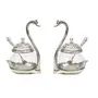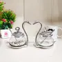 Not in good condition. Lid of one doesnt fix and glass edge is bit broken. One swan was full black n other silvery shiny.Not happy with the product. I had to clean it to look better.