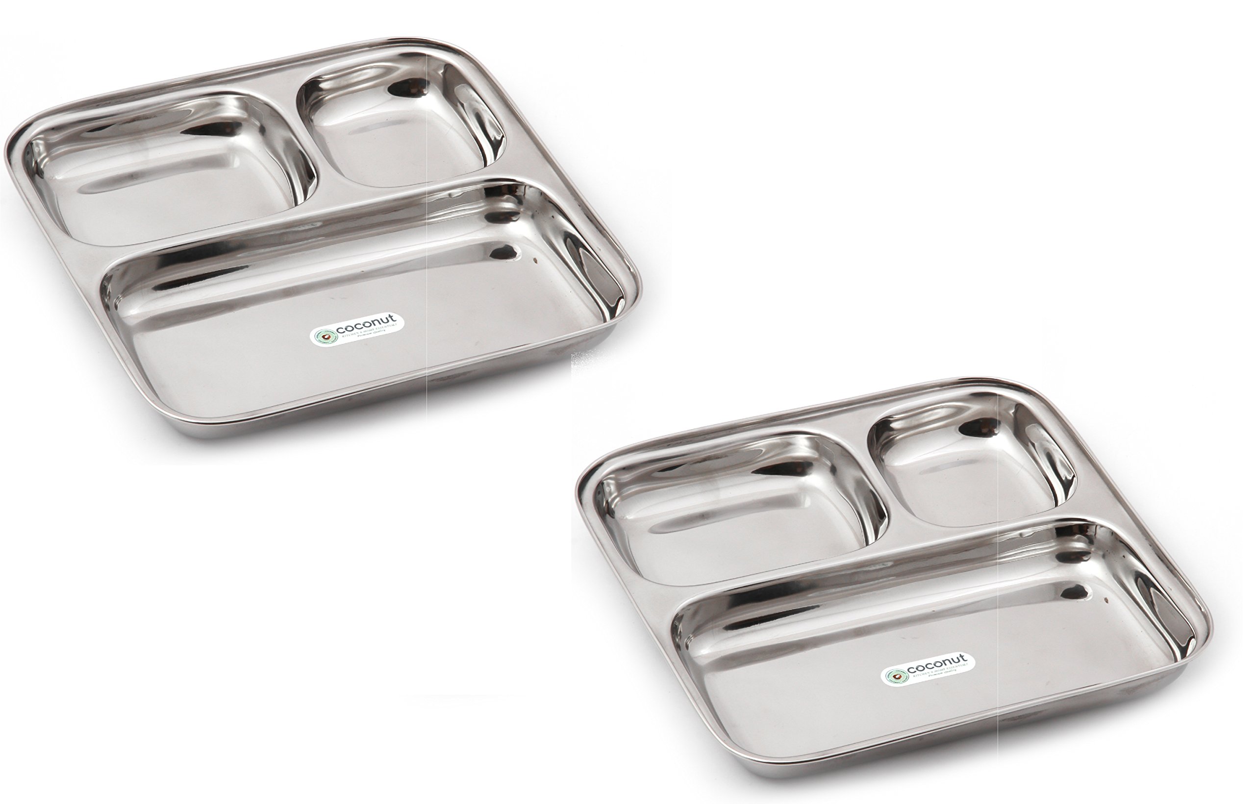Coconut' brand is a symbol of products and superior craftsmanship . Coconut Products are guaranteed for any kinds of manufacturing defects . Coconut Partition Plate also known as Pav Bhaji Plate is a set of 2 plates which are made from superior quality heavy gauge food grade stainless steel . These plates have 3 partitions which makes it easy to serve separate food items all at once . The plates are extra deep i.e food items won't mix up with each other . The plate has a plain glossy finish to make them appealing in design . The Plate has got neat polished edges to ensure your body doesn't gets any cuts or nicks from the plates . Good quality stainless steel ensures your plate doesn't chip or crack and gives you a long life of the product in the long run . The plates are most ideal for serving Pav Bahji they can also be used for serving rice dishes Roti Curry etc. Long life easy to clean easy to use attractive design extra deep .