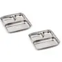 coconut Stainless Steel Partition Plate - Set of 2 (Pav Bhaji Plate) - Small - 8 inches