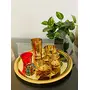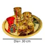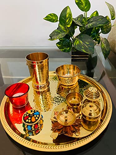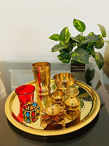 BRASS CRAFTS Brass Thaali Katori Glass Set Thaali Pooja Plate Dinner Plate Hammered Pattern Thali Diameter: 30CM Glass Katori Made in India