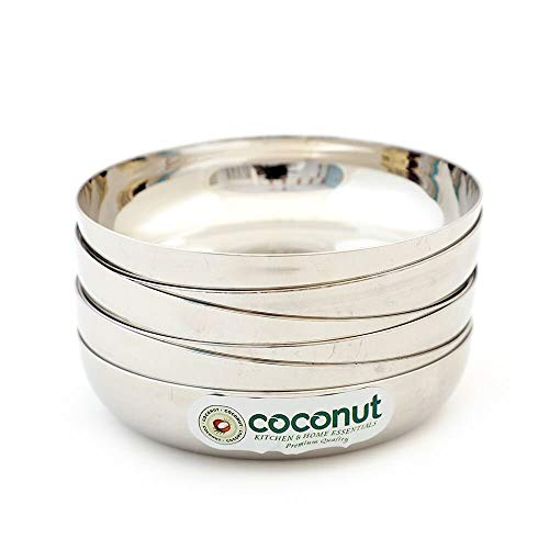 Coconut Stainless Steel Plate Easy to Serve and Carry High quality heavy gauge stainless steel with exotic silver shining High quality heavy gauge stainless steel with exotic silver shining Build Up healthy life style Diameter 12.5 cm Set of 6.