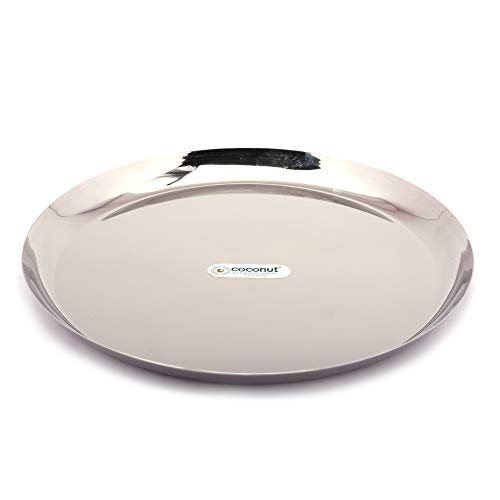 Coconut Stainless Steel Plain Saffron Round Plates/Thali Diameter 22 Cms - 6 Units