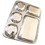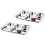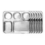Stainless steel compartment thali/plate set of 6 pieces.High quality and high polish plates.These thalis are made from 18/8 stainless steel that is completely food safe and hygienic to use .The steel used is unbreakable and does not gets rusted over time.You can freely use these thalis as these are non brittle .The katoris of these thalis are extra deep so as to accomodate much amount of sabji/pulses etc.