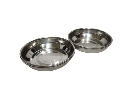 Made safe and durable from 100% food-grade stainless steel Added sturdiness from heavy gauge material Shiny polished finish enhances aesthetic appeal Easy to clean and dishwasher-safe Widely used for serving snacks small appetizers salads and decorative pieces Small rice plates side serving dishes dessert plates or appetizers plate Product Dimension- 11x11x2.5 cm Product Weight- 44 gm each Capacity-140 ml