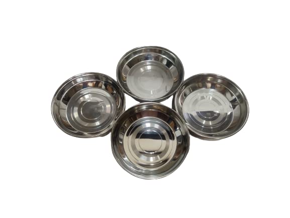Dynore Stainless Steel Heavy Gauge Halwa Plates/Dessert Plates/Chutney Plate/Serving Plate- Set of 4