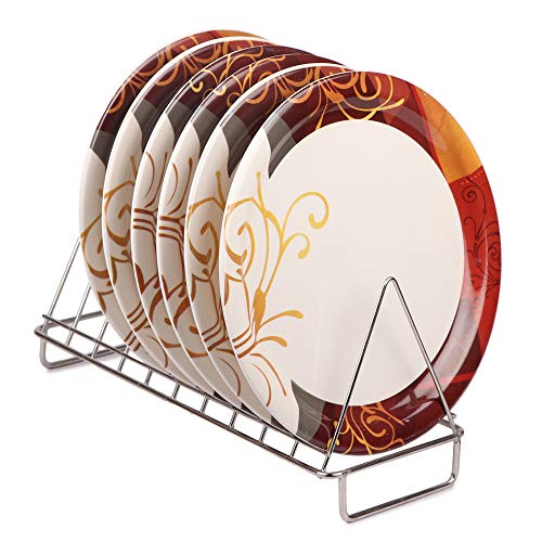 Get the posh and sophisticated feel of a rich dining experience in an expensive hotel right in the comfort of your home with this set of coloured Dinner Plates from "Golden Fish". Made of Melamine these round set of plates is lightweight & durable. Additional Benefits:- >> It is also dishwasher-safe making it easy for you to clean it without exhausting yourself >> Pack of 6. >> These dinner Plates includes six dinner plates and enough to set a beautiful dining table. >> Break resistant >> Dishwasher safe >> Stackable; Hygienic; Design and color will never faint >> Made from toughened extra-strong and scratch resistant material >> Colour: White Base with Printed Patterns Note:- Please note that computer monitors differ in the colors shown on the screen so actual product may be darker or lighter than anticipated.