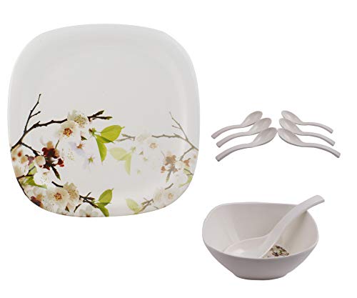 Get the posh and sophisticated feel of a rich dining experience in an expensive hotel right in the comfort of your home with this set of coloured dinner plates from golden fish. Made of plastic this round set of plates is lightweight & durable. Additional benefits:- this dinner set is microwave-friendly that makes it easier for you to heat the contents rather than transferring them to another utensil. It is also dishwasher-safe making it easy for you to clean it without exhausting yourself pack of 6. This dinner set includes six dinner plates and enough to set a beautiful dining table. Break resistant dishwasher safe; microwave safe stackable; hygienic; design and color will never faint made from toughened extra-strong and scratch resistant material colour: white base with floral patterns note:- please note that computer monitors differ in the colors shown on the screen so actual product may be darker or lighter than anticipated.