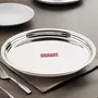 HAZEL Stainless Steel Plates Set | Premium Mirror Finish Thali Set Stainless Steel | Heavy Gauge Steel Plates Set For Dinner & Lunch Set of 1 21 cm It is very economical in range made of food grade stainless steel. It is non breakable durable sturdy rust free and long lasting. Stainless steel is hygienic to use and easy to clean as compared to other materials. This set can be nested one into another and therefore helping save shelf space in the kitchen. This set is perfect for gifting purposes at weddings anniversaries. You get a magnificent dinner plate set at an extremely affordable price. Food served on this elegant dinner plate set improves the dinner table setting. This set is made from high quality stainless steel making it exclusive and durable. This set has been beautifully designed to add grace to your dining experience. Easy to clean and wash they have very exotic silver shining.An ideal plates to serve various food products on dinning table. Available in multiple sizes according to need of kitchen. Small Thali / Plate Dimension : Diameter: 21cm / 8 Inches Height: 2 cm 1 Year Manufacturer Warranty. This product is under 1 Year Warranty from the date of retail purchase against any manufacturing defects in material and workmanship. The Warranty does not cover damages resulting from accidents mishandling or tampering with the mechanism. Warranty valid against producing original bill endorsed by the seller.
