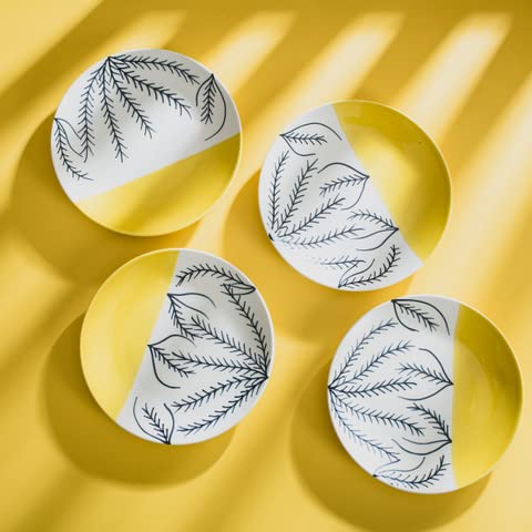 KHURJA POTTERY Ceramic Serving Designer Dinner Quarter Plates Set of 4 (Microwave and Dishwasher Safe)