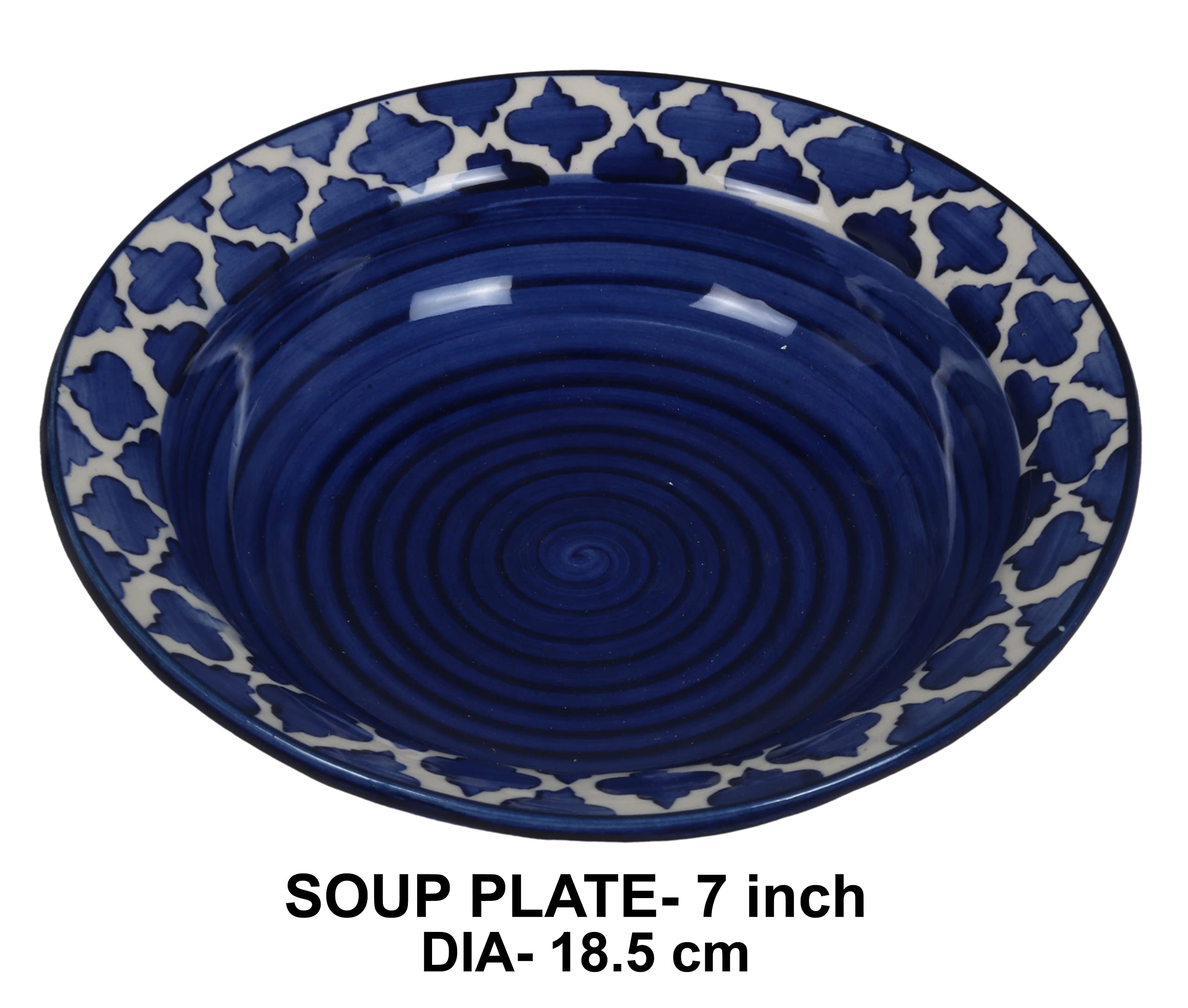 Large Enough for everyone in Indian Families - Royal Blue Color pottery Great size 7" diameter depth 2" height big enough to use for cooking hot cereals or oatmeal in the microwave WITHOUT overflowing. Perfect for soup pasta nuts salad fruit rice and noodle without spillage. Our All hand-painting ceramic pottery will not wear away. Please note: There could be a slight variation in the glazing/color/finish on the product as the glazing is done at 1100C to 1200C degrees celsius inside the furnace fired to make a durable and tolerant product and due to the natural property of the studio glaze it is nearly impossible to predict the accurate same color of the glazing/finish which will eventually come on the product after the Gas fired Furness process. Well Packaged For Perfect Condition: Our packaging is used with the best EPE foam to ensure safety in transit these ceramic products will arrive at your hand safely.