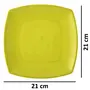 Material: Plastic Color: Green Size: 21 cm x 21 cm x 2 cm These melamine quarter serving platesn set of 3 are the finest quality coffee/tea or breakfast lunch and dinner plates designed beautifully with oval corners These snack plates can be used to serve biscuits eggs idli sambar vada nashta dahi vada namkeen rice roti These quater serving plates are food grade safe for kids and even older people with great quality and reasonable these melamine small plates will win your heart
