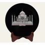 MARBLE INLAY ART AGRA - PACCHIKARI Handcrafted Black Marble inlaid Taj Mahal Plate For Office and Home. Design: Taj Mahal Inlay With Mother of Pearl. We will send you small wooden stand also to display. We are himself manufacture of this product so we do custom design also. To maintain this art piece simply clean it with cotton cloth and apply white wax for shine. It is an art piece which will be a beauty & the conversation piece at home.