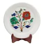 The White Marble Inlaid Plate is made in Agra India & fully handmade with inlay stone not a color or paint. MARBLE INLAY ART AGRA - PACCHIKARI Handcrafted White Marble Plate Perfect for Office Home and Hotel Decoration. Design: Floral with tree of life.. We will send you a paper with description and Meaning of the stone . We will send you wooden stand also to display. We are himself manufacture of this product so we do custom design also according to your color size and shape and bulk order too. To maintain this art piece simply clean it with soap water and dry cotton cloth. It is an art piece which will be a beauty & the conversation piece at home and perfect example of make in India. Stone are inlaid in the Plate Are Malachite - Green. Carnelian - Orange. Jasper - Brown. Turquoise - Light Blue. Mother Of Pearl - White. Lapis Lazuli - Dark Blue Pauch Shell - Colorful.