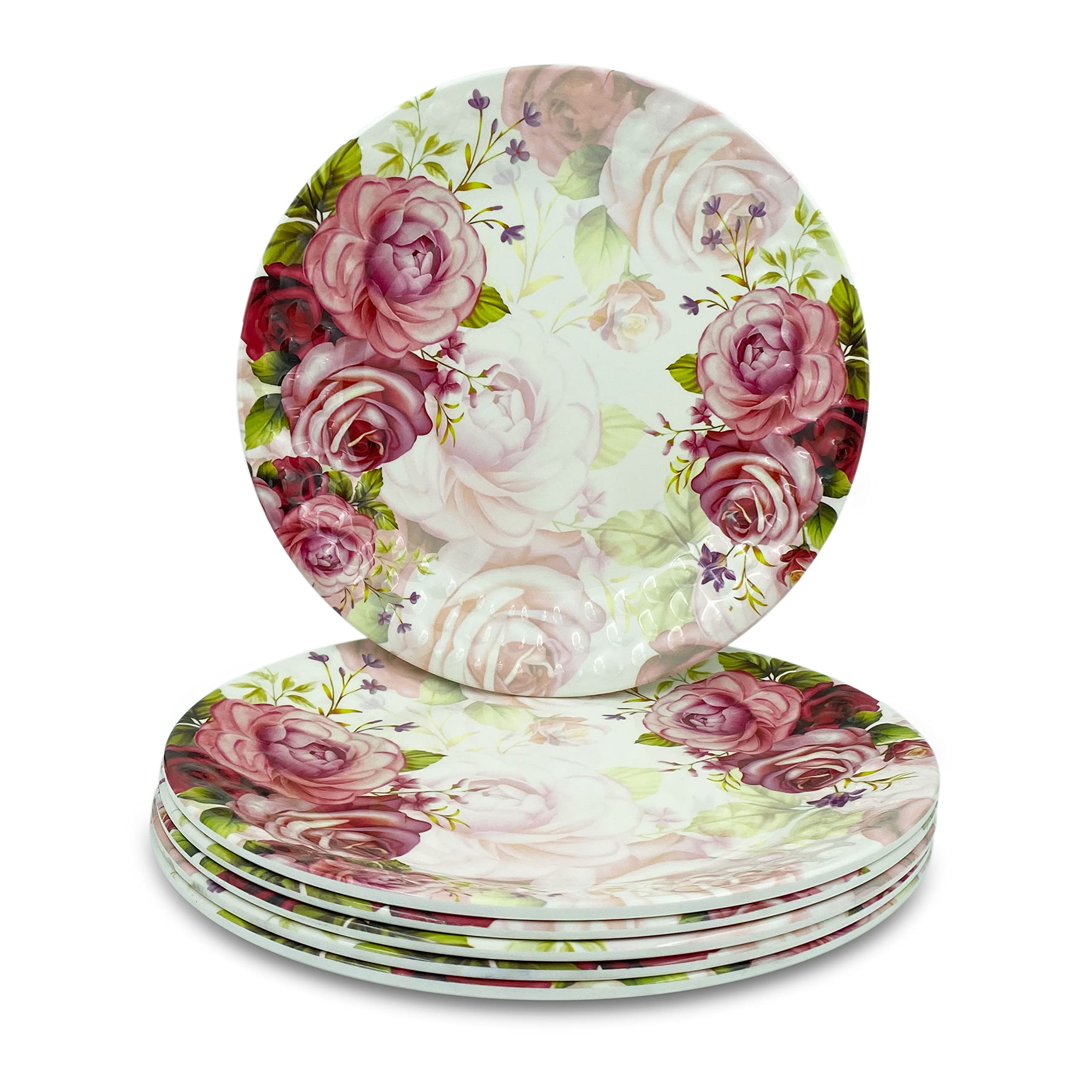 Melamine Dinner Full Size Plates Set of 6, Unbreakable Plates (6 pieces, 11 inches) (Floral - Pink)