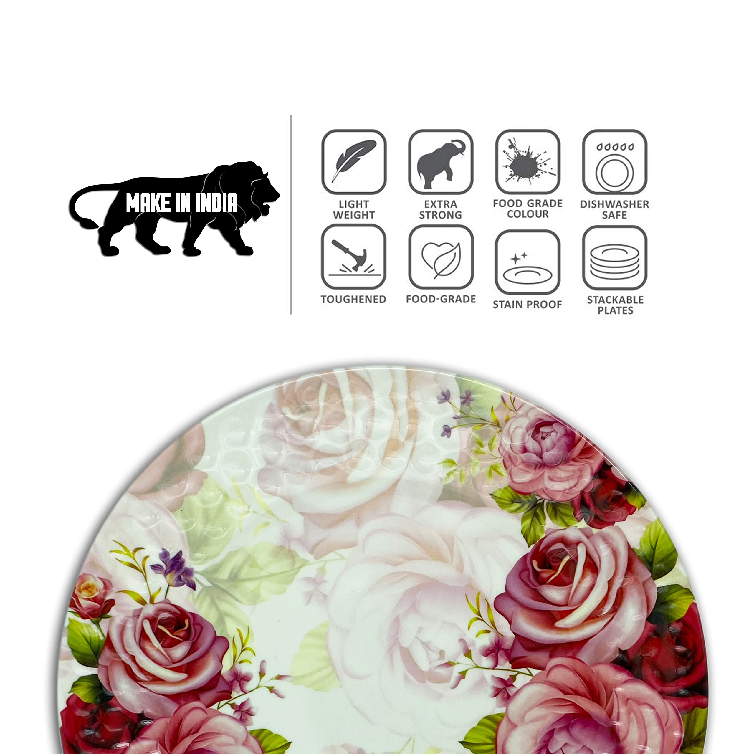 • The texture and design of these Dinner Plates is same as shown in the Image. It has a very unique and Cool Combination of Colors. This gives a very elegant look to your dining table and will leave a very good Impression on your guests.