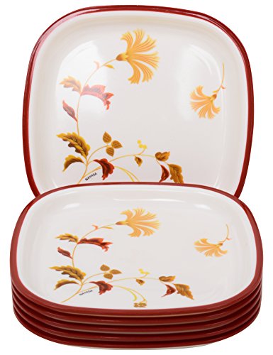 Each set contains 6 beautiful plates with printing in the center in a compact packing microwave safe refrigerator safe foods like pumpkins carrots or foods with excess turmeric can change the colour of the container but this does not suggest any kind of quality defect available size : quarter plate and full plate.