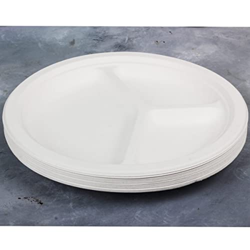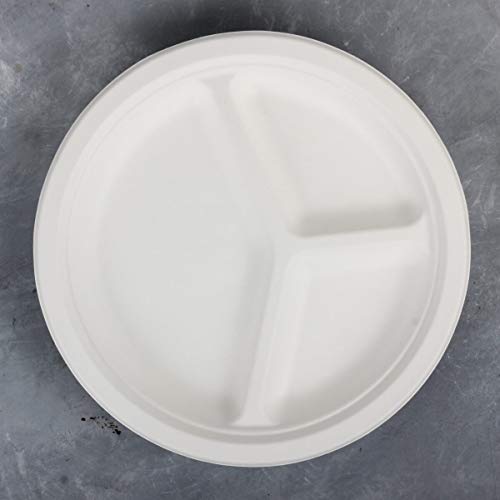 Urban Platter Bagasse Eco-Friendly Disposable Round Plates with Compartments [10 inches Pack of 20]