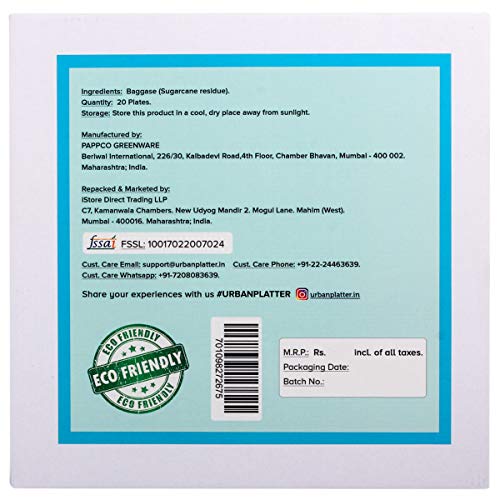 Base Biodegradable Disposable Round Plates [10 inches Pack of 20]Food Grade.Compostable.100% microwaveable.100% oil and waterproof.Made from sugarcane waste.