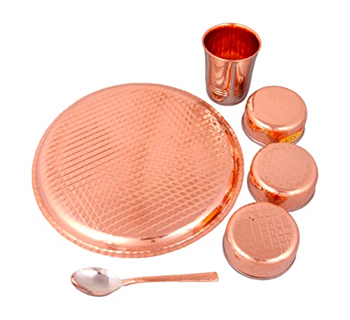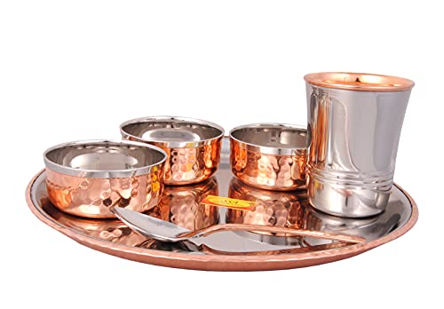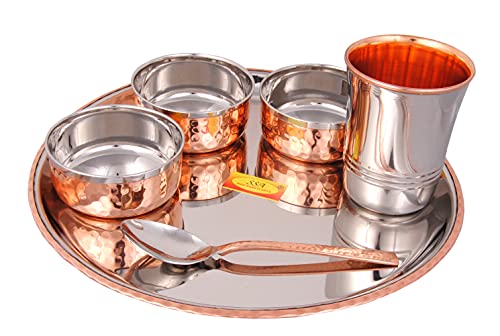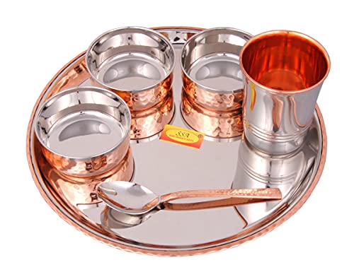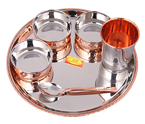 Shiv Shakti Arts Steel Copper Dinner Set Thali Set - 6 Pcs Designer (Platenium Dinner Set) - for Dinnerware Tableware & Serving Items