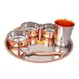 • Steel Copper Dinner Set Thali Set - 6 Pcs Designer ( Platenium Dinner Set ) - (Included Components = 1 Plate 3 Bowl 1 Glass 1 Spoon - 6 Pcs Dinner Set)