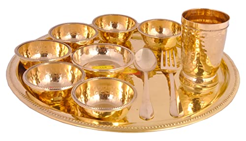 Shiv Shakti Arts® Pure Brass ThalI Set 11 Piece |Bhojan Dinner Set | Hammered Design l Brass Dinnerware Set for Gifting Diwali Special