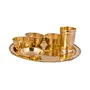 • Heighly Durable Engraved Flower Design Pure Brass Dinnerware Thali Set - Dimension => Plate : 2 x (12.5" Inch) 31.6 cm(Height x Width)Diameter - 12.5" Debth - 2 cm Weight - 618 Gm Approx. | Glass = ( Height x Width ) - 4.1 cm x 2.6 cm Debth - 9 cm Weight
