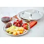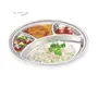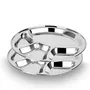 Stainless Steel Round Dining Plate Four Compartment Thali 13 inch diameter Depth (Silver) is ideal for homes restaurants party halls hostels temples hospitals and much more. The unique Four compartment design of this plate does away with additional bowls and enables you to carry different food items without getting them mingled together. It is hygienic rust-free sturdy and easy to wash and upkeep.