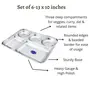 Stainless Steel Dinner Plate/Thali with Rectangle Compartments, Silver, Set of 6