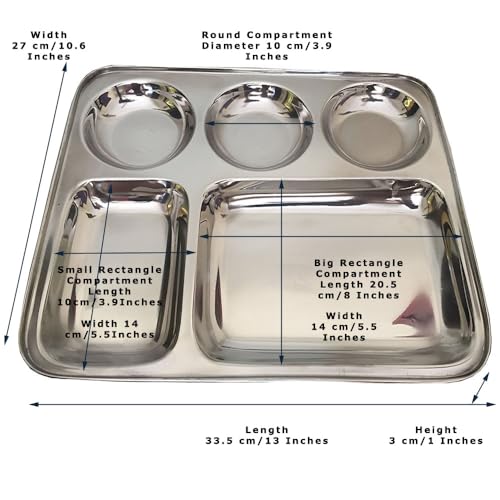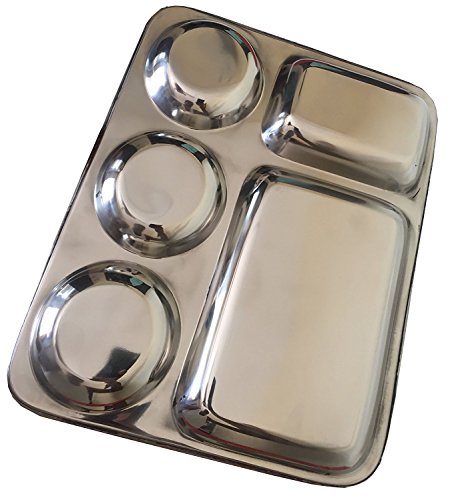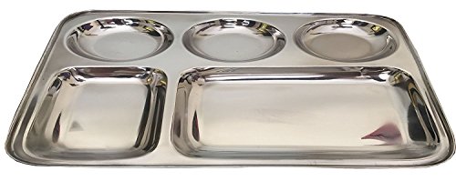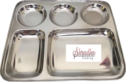 Stainless Steel Five Compartment Plate,Thali,Mess Tray,Dinner Plate,Steel Thali,Steel Plate,Indian Dinner Thali,Snack Tray
