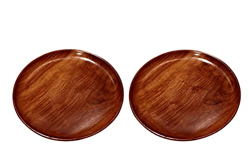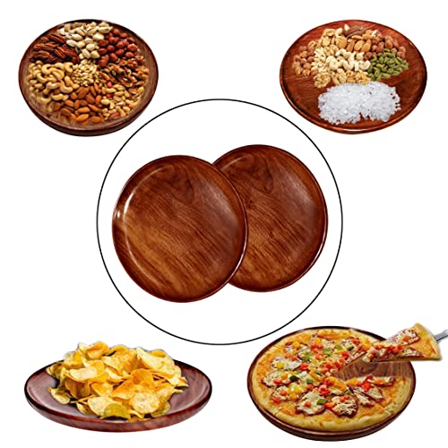 Woodiva Wooden Plate/Thaali. Mulitpurpose Serving Plate for Fruit Serving & Dry Fruit Serving Pizza Serving/Food Serving Plate//Dinner Plate for Home and Kitchen. (8'' 2 Pcs)