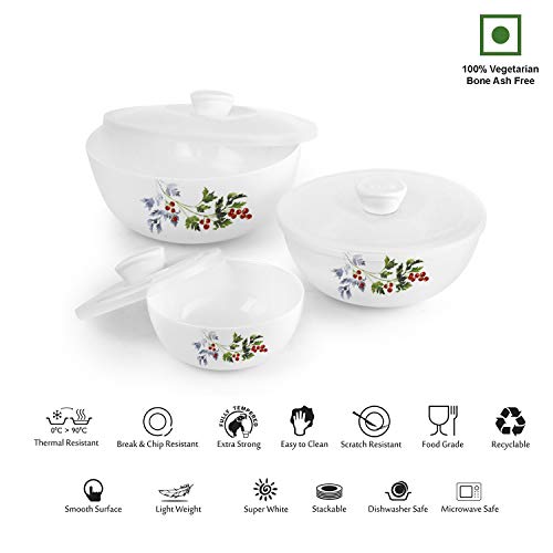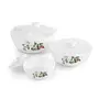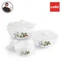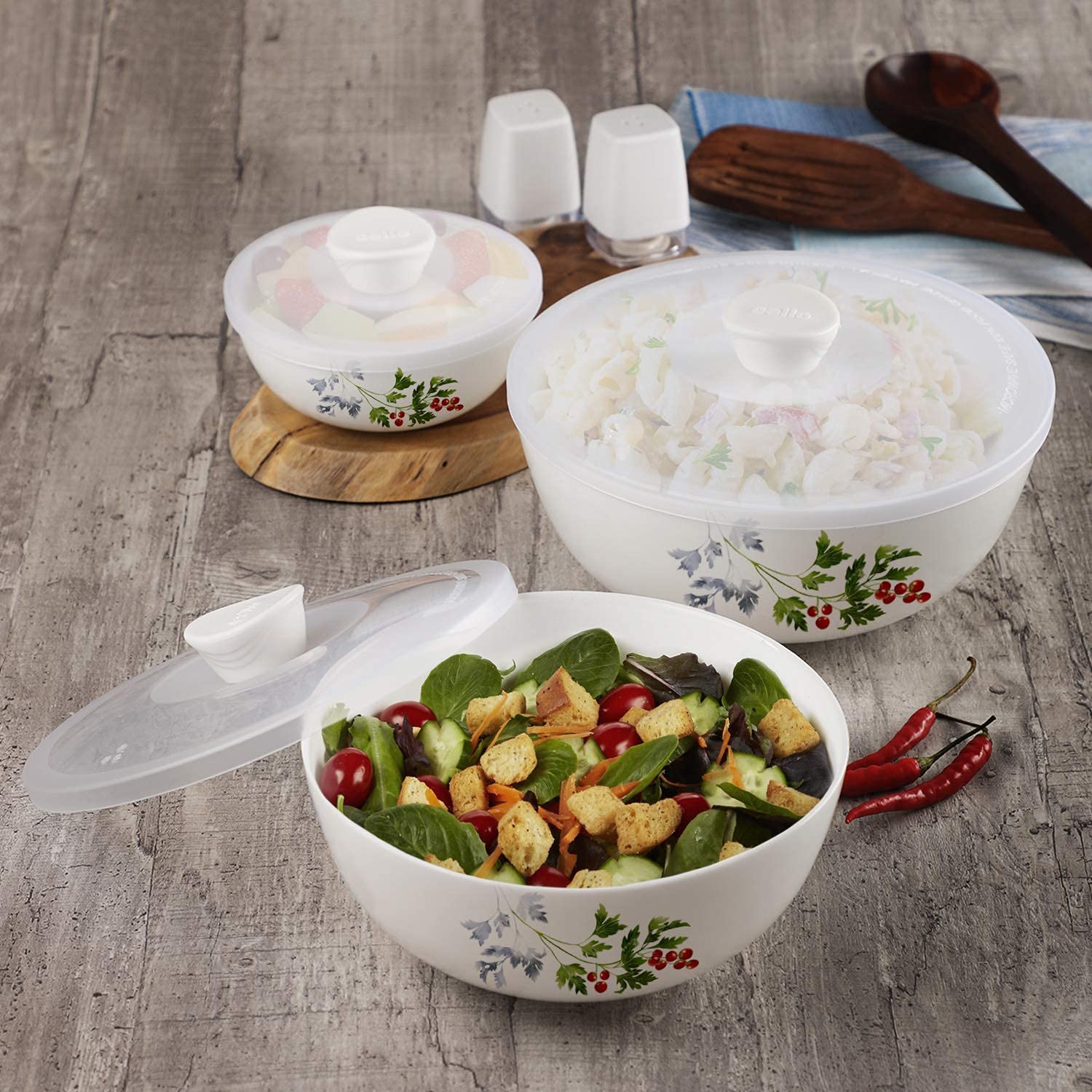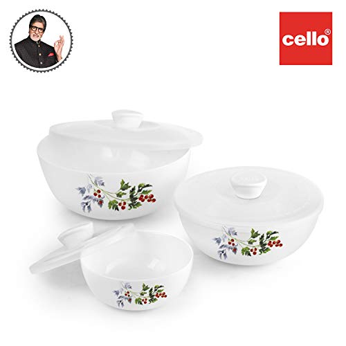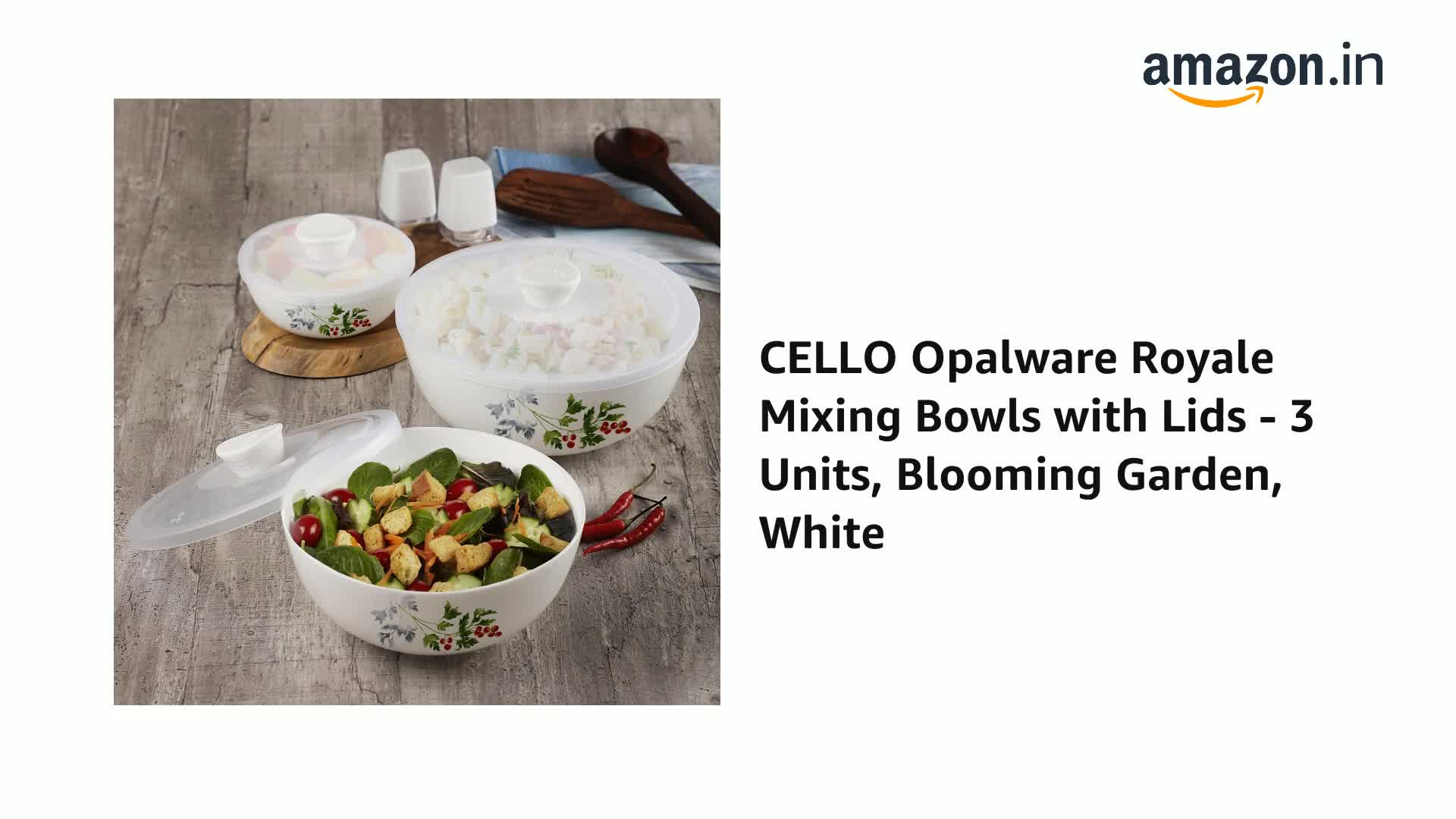 CELLO Opalware Royale Mixing Bowls with Lids - 3 Units, Blooming Garden, White