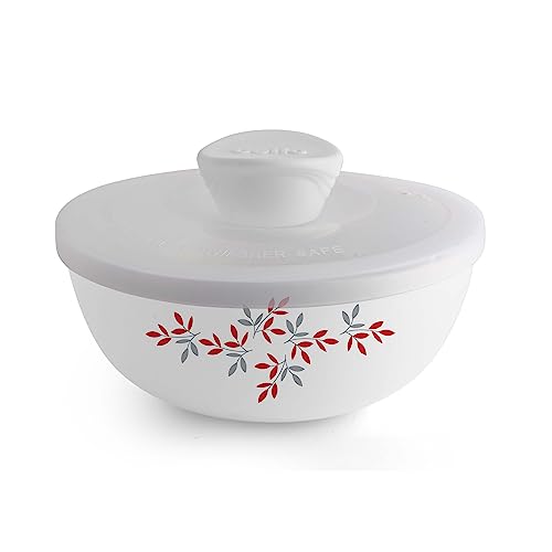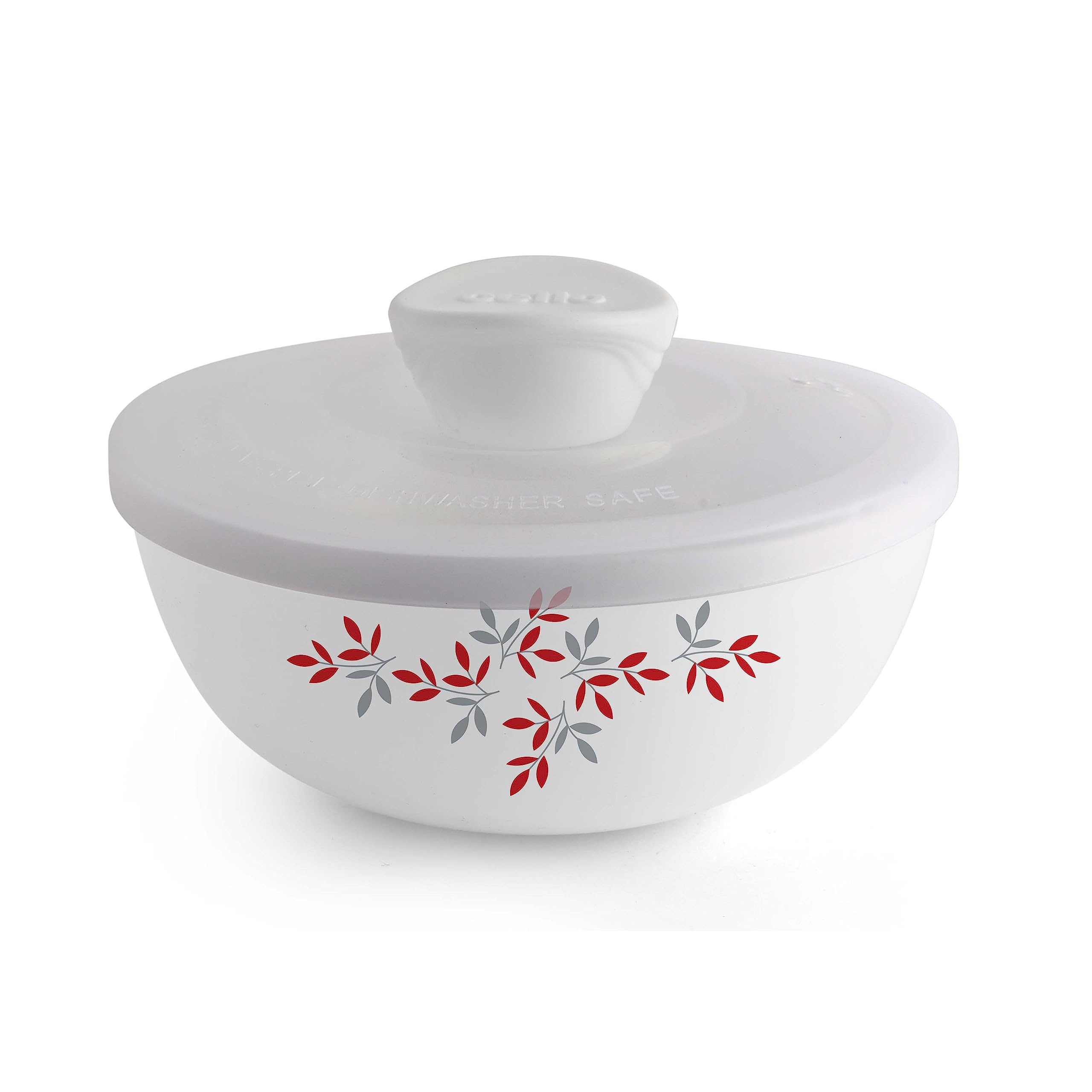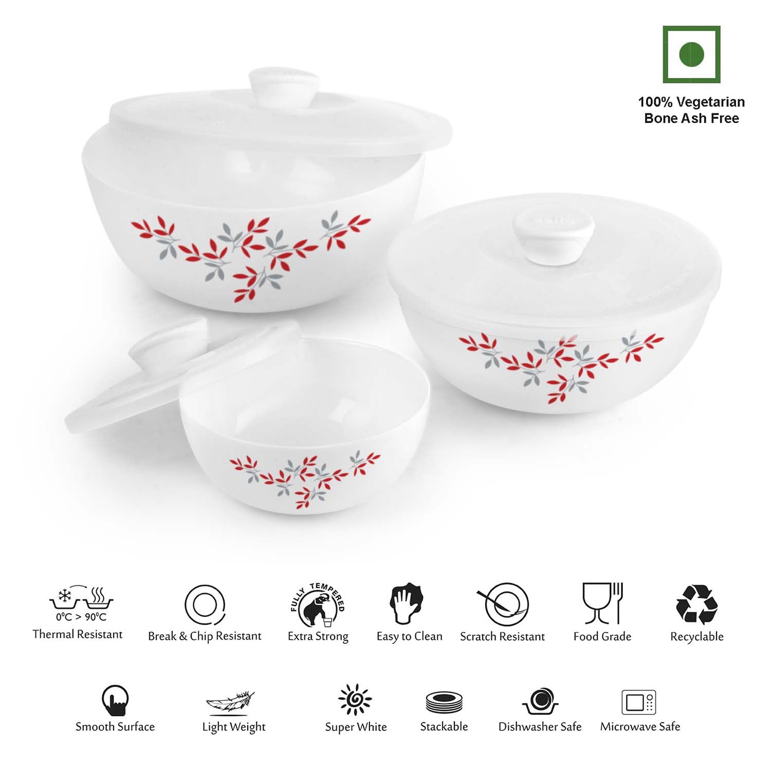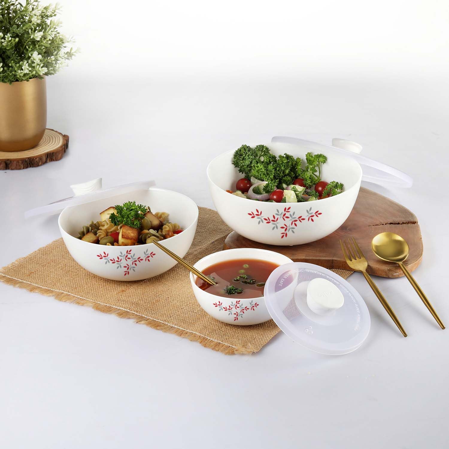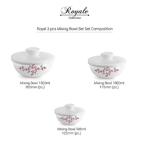 CELLO Opalware Twilight Floral Mixing Bowls with Lid | Thermal Resistant & Light Weight | Dishwasher & Microwave Safe | (500ml, 1000ml,1500ml), 3 Units, White