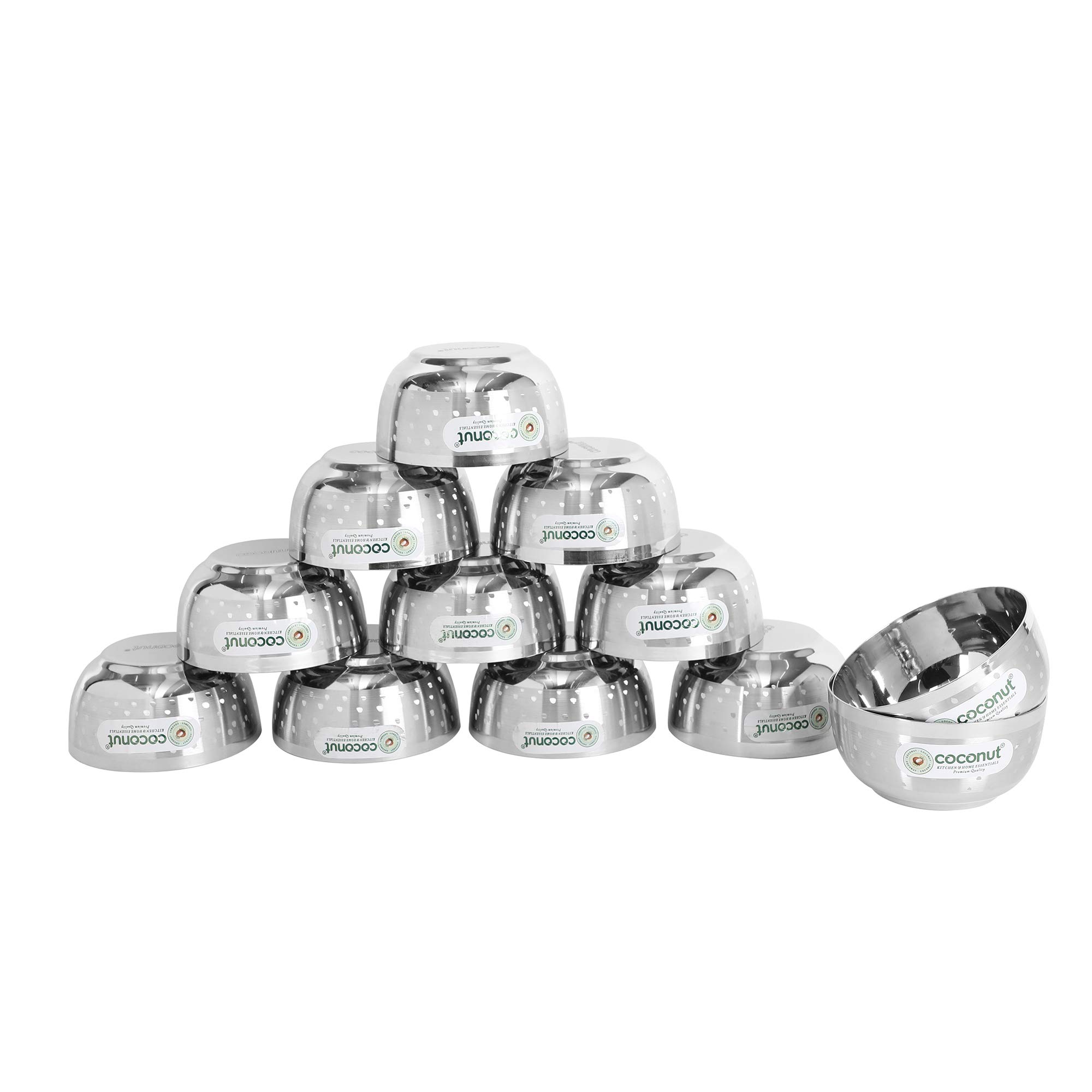 coconut Stainless Steel - C24 Shower Apple Bowl/Vati, Set of 12, 250ML Each | Durable & Rust-Resistant | Ideal for Serving Dal, Curry, Raita, Desserts | Home & Kitchen Essential
