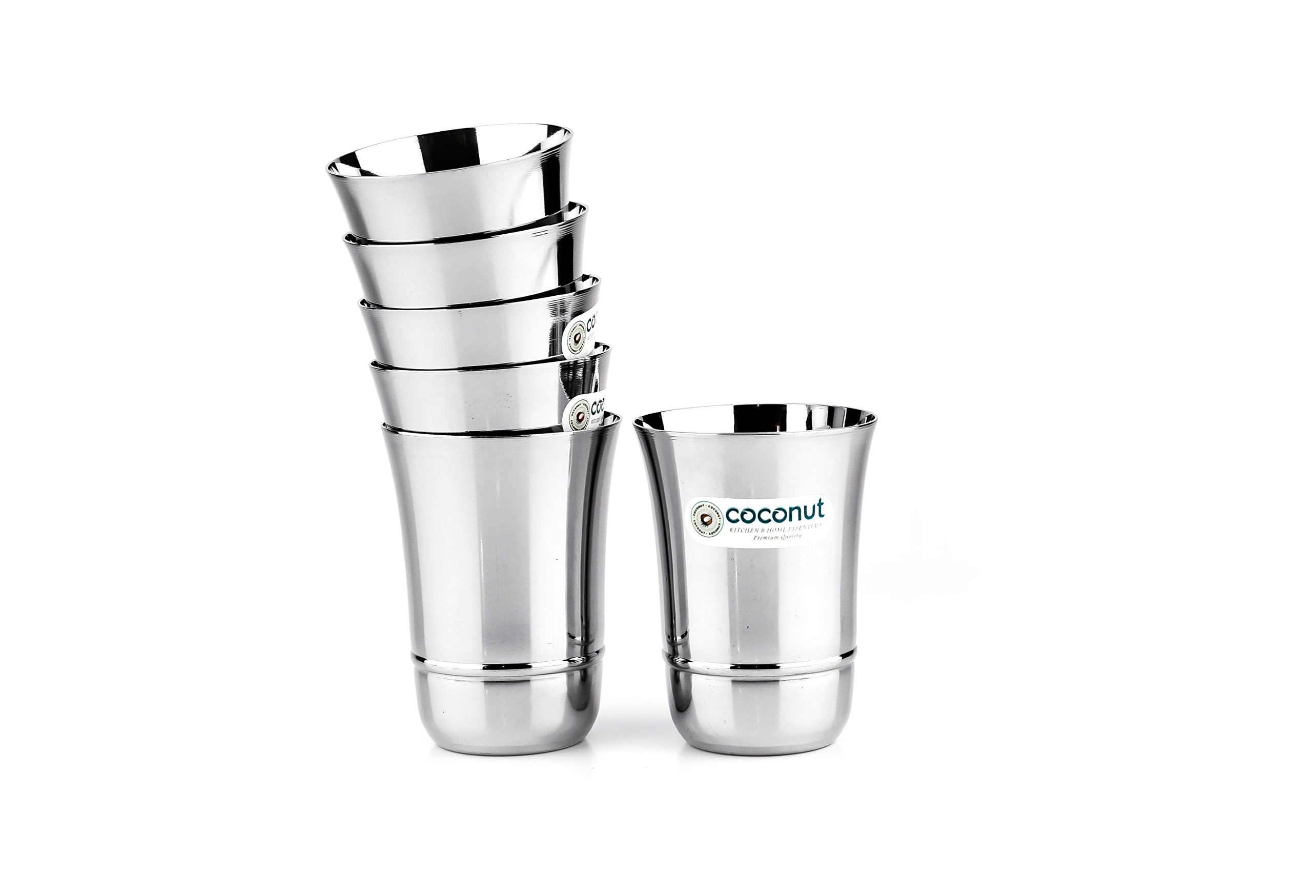 coconut Stainless Steel -Glass | for Home, Office & Restaurant Drinkware Ideal for Serving Lassi, Chaas, Water, Juice & Lemonade Pack of 6 (Capacity-250ml Each)