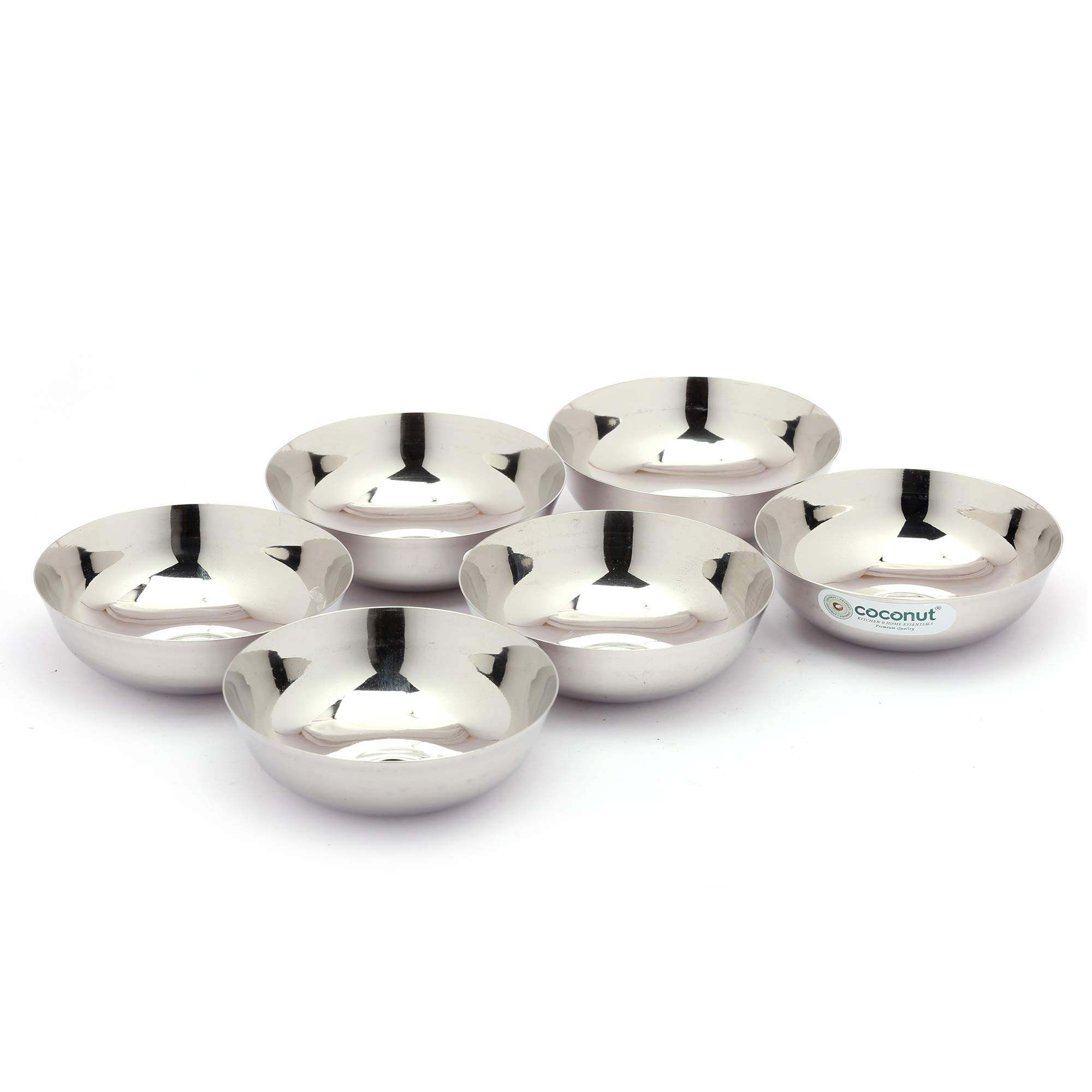 Coconut is a range of innovative and products for home and kitchen.Its made of 100% food grade stainless steel.These multipurpose canisters can be used to store Food products and are easy to clean/maintain.It is ideal for organizing your kitchen cupboards and as well as looking elegant stylish display. This is a Stainless Steel Marwadi Chaliya Bowl/Vati / Katori. Comes in Set of 6.