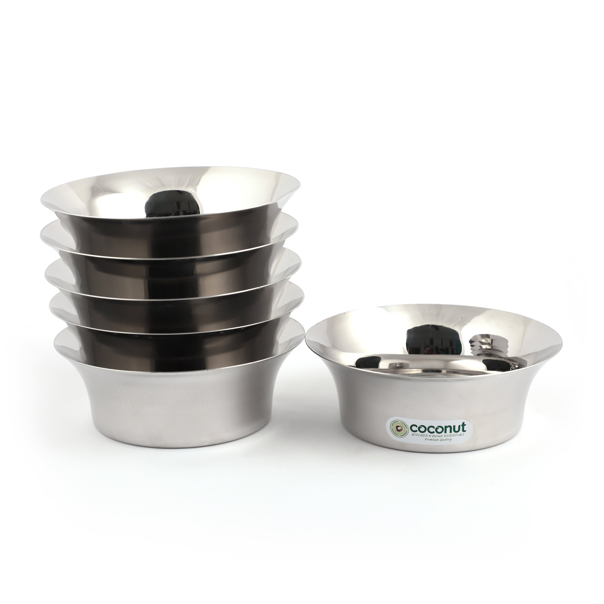 Coconut Stainless Steel Pari Bowl (9.5 cm Diameter) - Set of 6