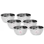 Dharam Paul Traders Heavy Gauge Stainless Steel Hammer design Apple Bowl/Wati/Katori with Mirror Finish 9cm Dia Set of 6pc 180 ml Each.Stainless steel hammered katori bowls set of 6 for kitchen.This katori set contains 6 big size round shaped bowls katoris that will add a style to your dining table.The material of these bowls is high grade stainless steel.Its beautiful hammered design will attract your guests attention.