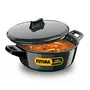 The 4.06 mm thick base and sides spread heat evenly and retain warmth for a long time making it an excellent utensil for both cooking and serving. It is offered with Hard Anodised Lid