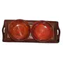 Handicrafts Designed Brown 1 Tray with 2 Bowls Wood Carvings